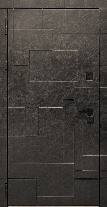 Отделка снаружи: лист стали + ламинированная МДФ панель 10мм , цвет Мамба Мориор