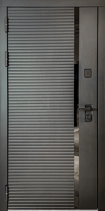 Отделка снаружи: лист стали + ламинированная МДФ панель 10мм , цвет Антрацит софт + вставка из черного акрила