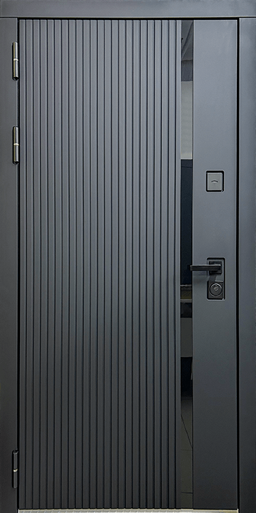 Отделка снаружи: лист стали + ламинированная МДФ панель 10мм , цвет Антрацит софт + вставка из черного акрила